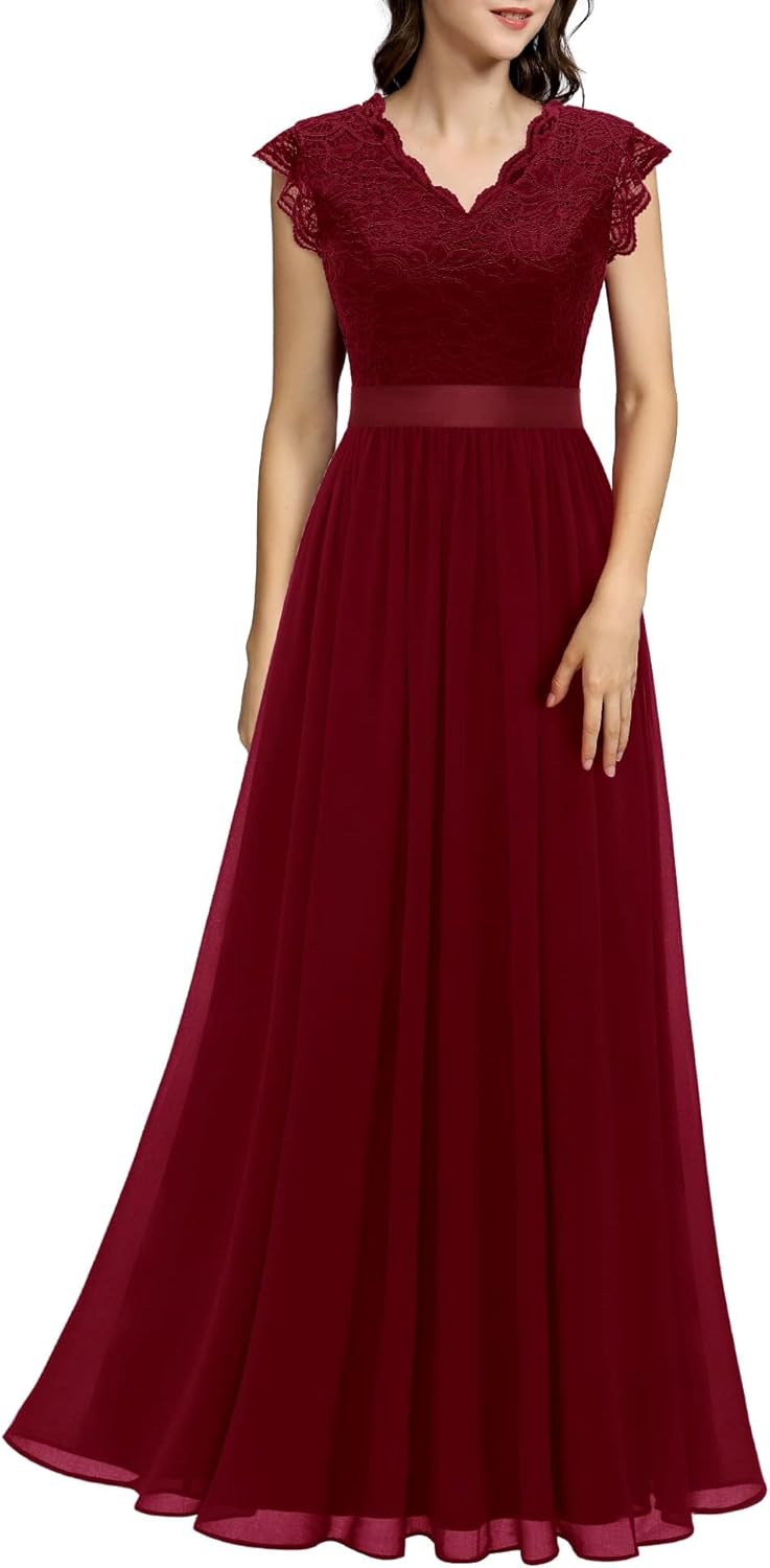 Dressystar Women's V Neck Sleeveless Lace Bridesmaid Dress Wedding Party Gown